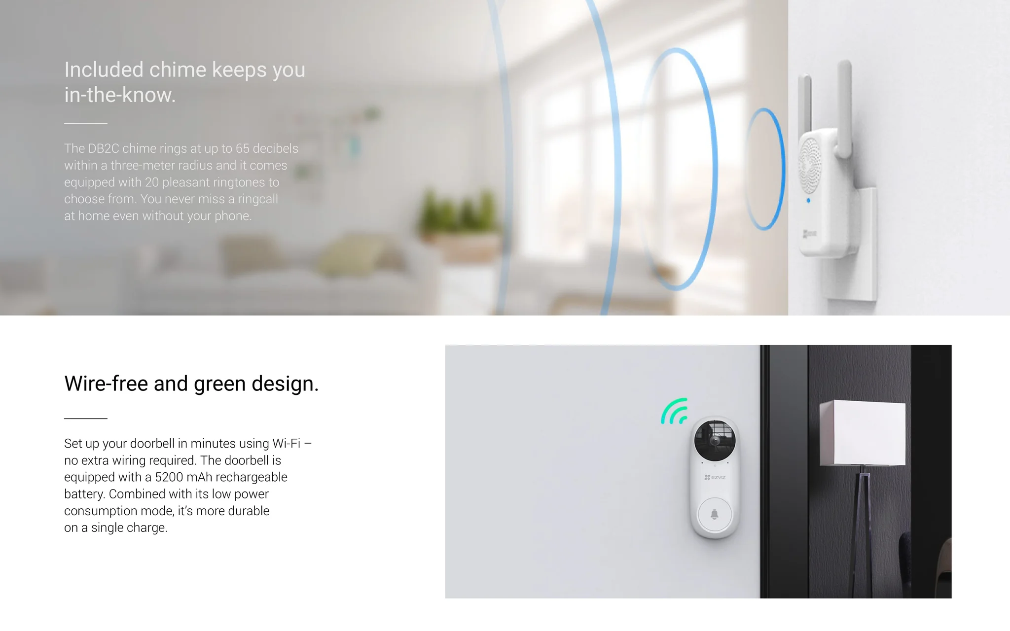 The EZVIZ DB2C Wire-Free Video Doorbell is a simple and smart solution for securing your front door. With easy wire-free installation, clear 1080p video, motion detection, and two-way audio, it keeps you connected to your home anytime through the EZVIZ app.