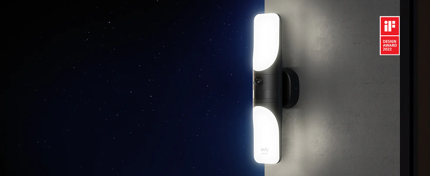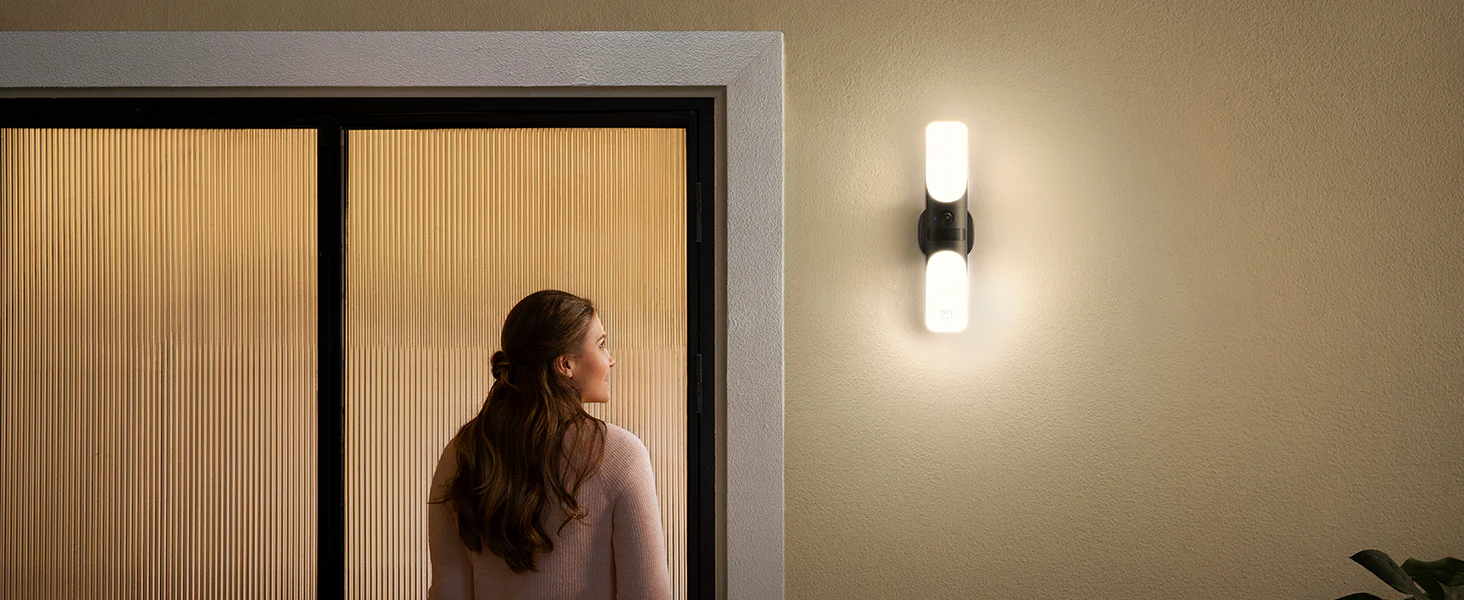 Upgrade your outdoor security and lighting with the eufy Wired Wall Light Cam S100 — a smart wall light and 2K security camera in one sleek design. It offers bright customizable lighting, crystal-clear video, and intelligent motion detection, all controlled easily through the eufy Security App. Perfect for front doors, garages, and garden areas.
